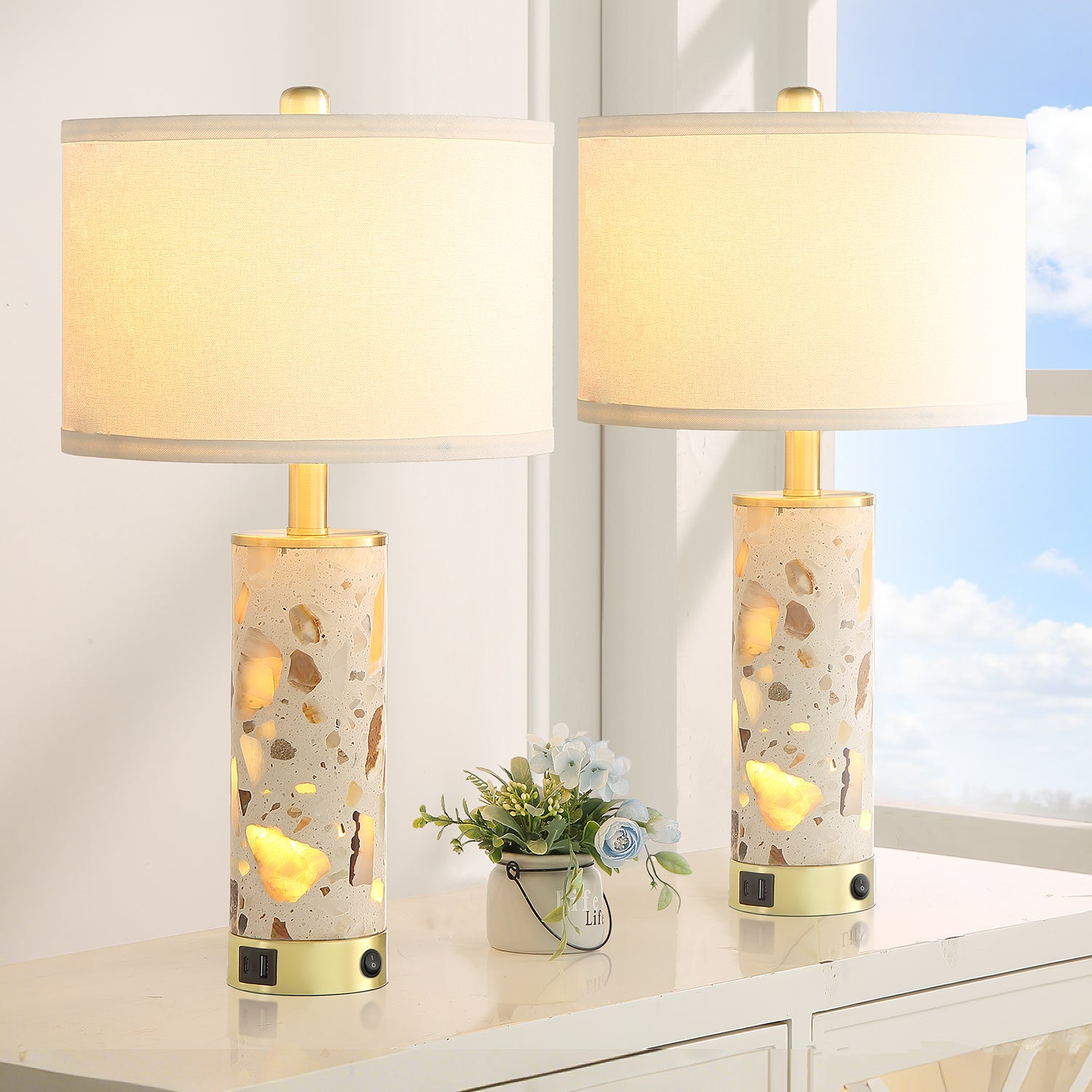 22.5″ Decorative Translucent Stone Table Lamps With Independent Night Light & Dual USB-A+C Charging Ports