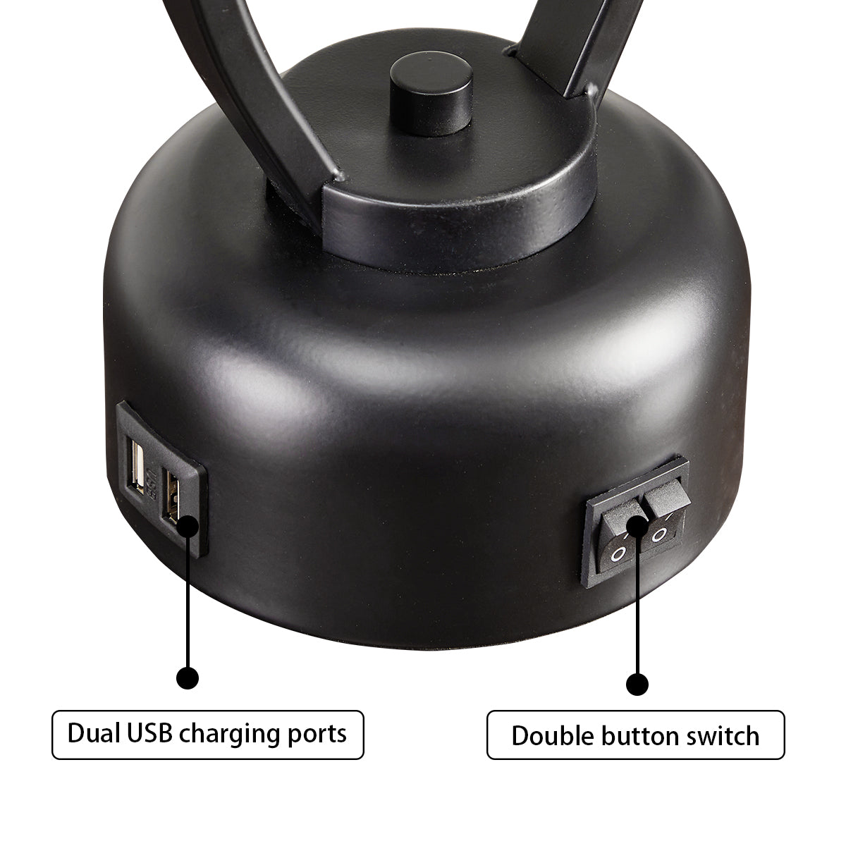 Tired of cluttered bedside tables? Upgrade your bedroom or living room with this 2-pack modern farmhouse table lamp set! Perfect for cozy nights: soft ambient light for reading, gentle night light for midnight trips, and dual USB ports to charge your phone/tablet—no more fumbling for outlets. Combining industrial- era detailing and soft modern style this lamp set is a superb choice for your living space. LED bulbs included for both lights, provide different lighting solutions. On the base there is a built-in dual USB for you to connect a charging cable. The built-in USB port type rating: 5Vdc, 2.1A. 2-in-1 Smart Hub - Charge phones & tablets simultaneously via dual USB ports Pro Lighting Control - Rocker switches independently operate bright reading light (760-lumen LED) and amber night light Includes free light bulbs 2 * 9W LED (EA26 base), 2 * C7 7W LED (E12 base)